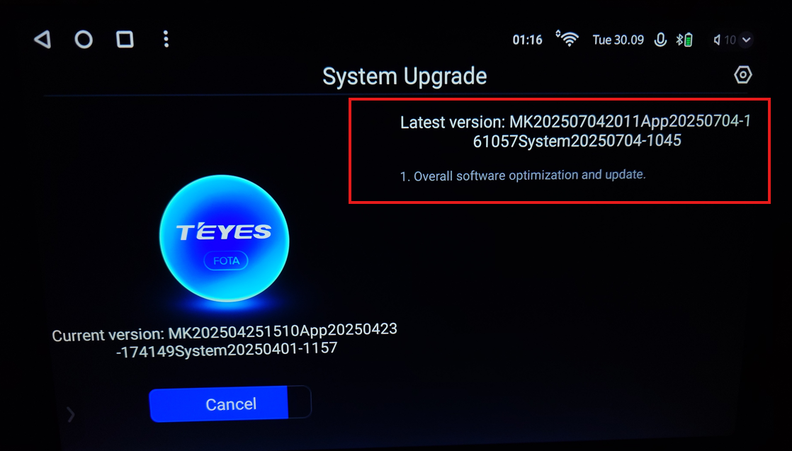 Seems there is issue with TEYES FOTA. Can download the update but will not proceed with the installation with Failure to identify file.